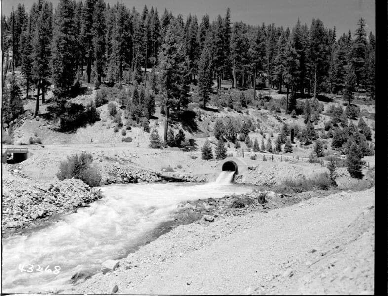 Portal Powerhouse - Temporary flow diversion from 12' pipe [Ward Tunnel]. Flow about 425 cfs..