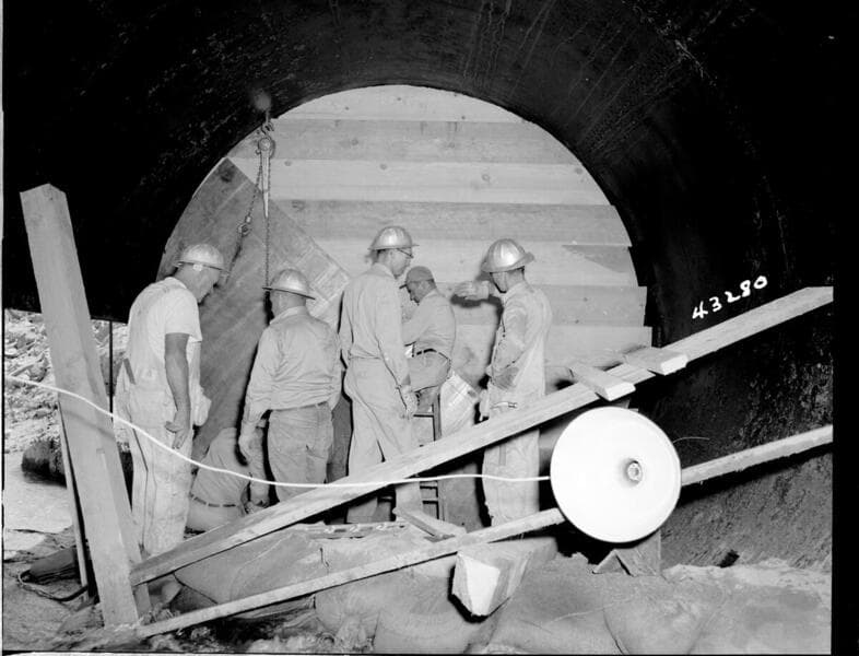 Portal Powerhouse - Opening in 12' pipe [near end of Ward Tunnel] for diversion.