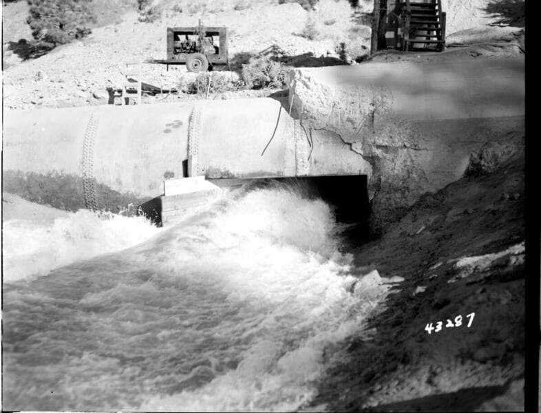 Portal Powerhouse - View from top of 12' pipe - First Diversion 250 cfs
