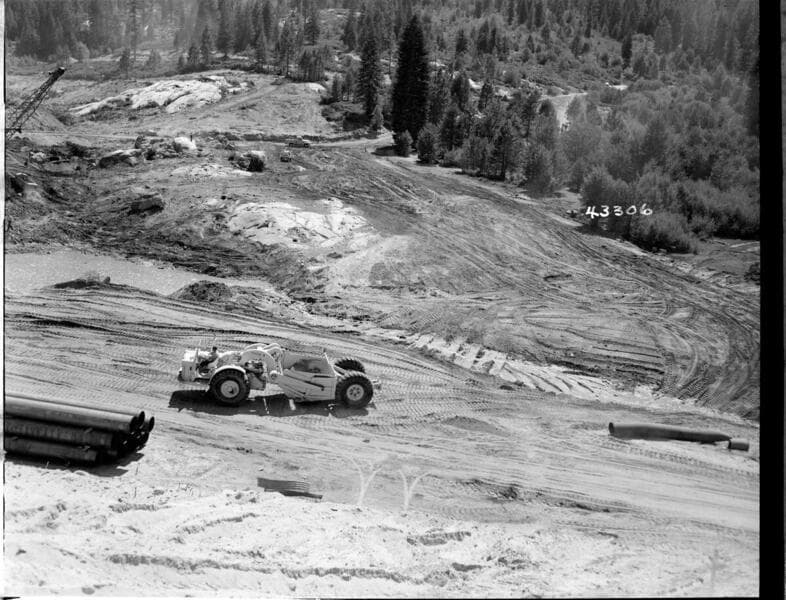Portal Powerhouse - Forebay - Fill placing operation as seen from east abutment.