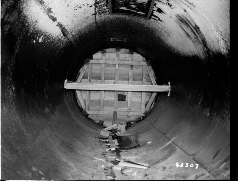 Portal Powerhouse - Upstream end 12' pipe - Diversion bulkhead in background.