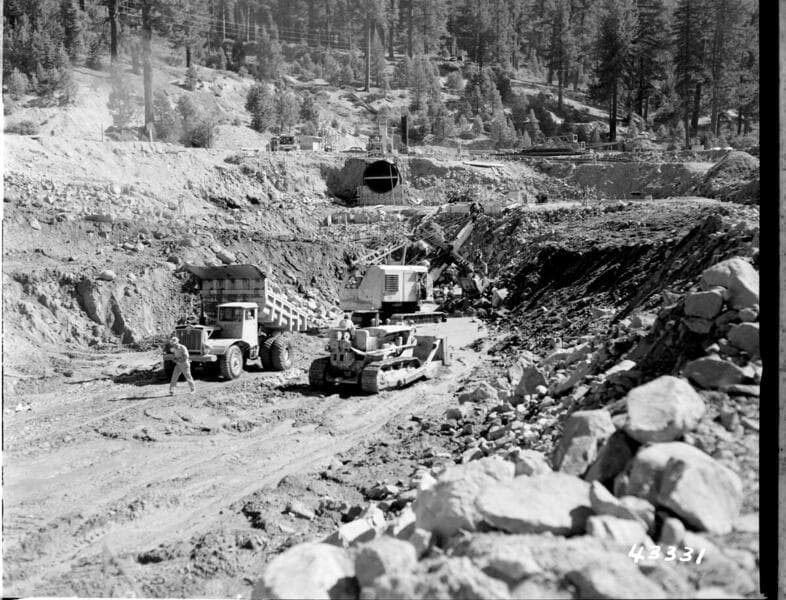Portal Powerhouse - Excavation below pipe. Progress about 7ft. from final elevation.