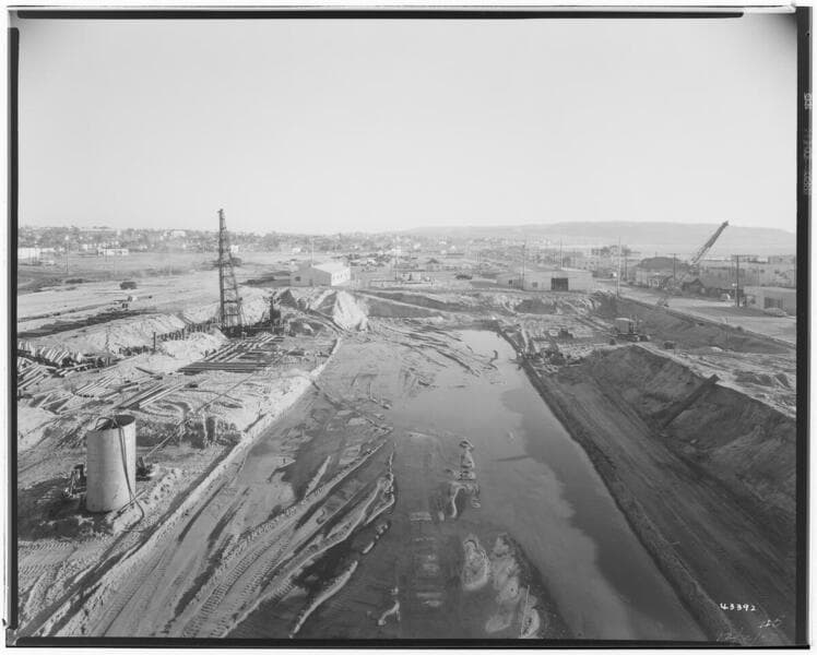 Redondo Beach Steam Station - Plants 2-5 - General view of Construction Area looking south from Plant #1 Gr. 56.0'