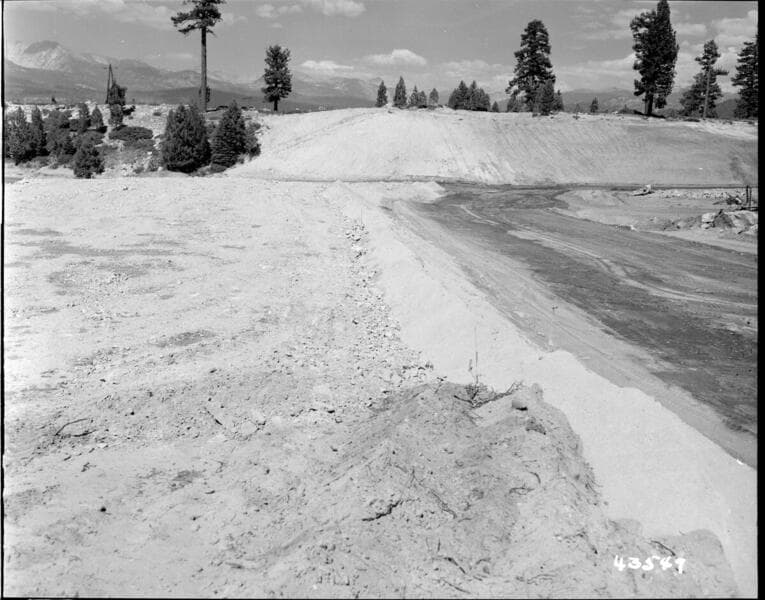 Portal Powerhouse - Forebay - East portion of dam foundation showing contact between impervious zone, filter, & tunnel muck zone.