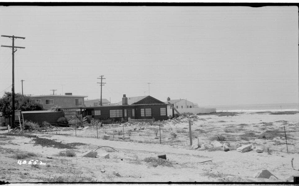 Santa Ana River General - South Coast Site - State Highway, looking east. [showing traffic by "Little Bay Trailer Park"]