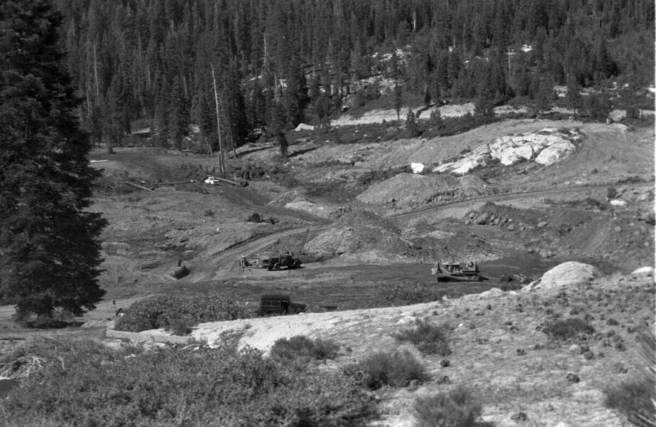 Portal Powerhouse - Forebay - Grading relocated road around forebay.