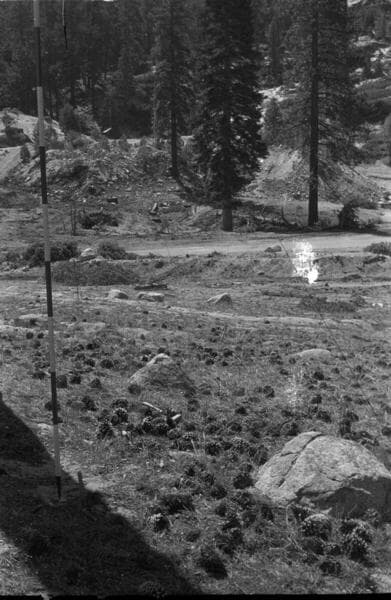 Portal Powerhouse - Portal Forebay - North side of reservoir and blanketed moraine from top of dam near left abutment.