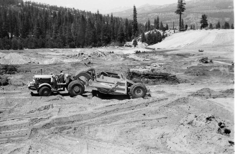 Portal Powerhouse - Forebay - Scraper placing earth in dike.