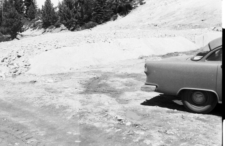 Portal Powerhouse - Forebay - Upstream toe of rock fill section of forebay dam showing pervious filter layer in place between rock fill and impervious sections of embankment.
