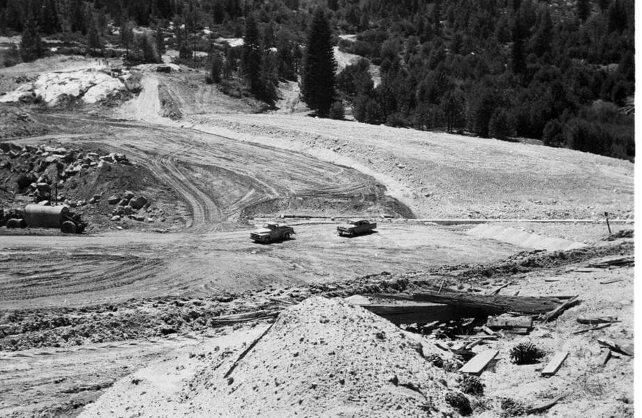 Portal Powerhouse - Forebay - Caransi & Cartright inspecting sandy east abutment of dam.
