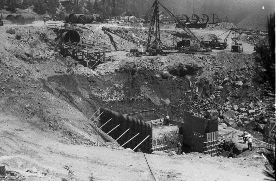 Portal Powerhouse - Forms being erected for substructure concrete at powerhouse.