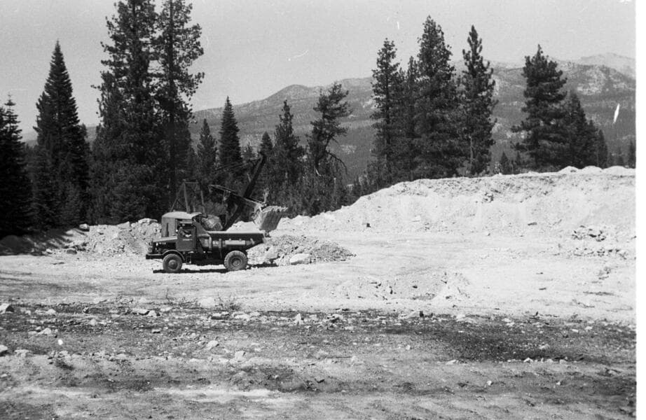 Portal Powerhouse - Forebay - East portion of dam foundation showing contact between impervious zone, filter, & tunnel muck zone.