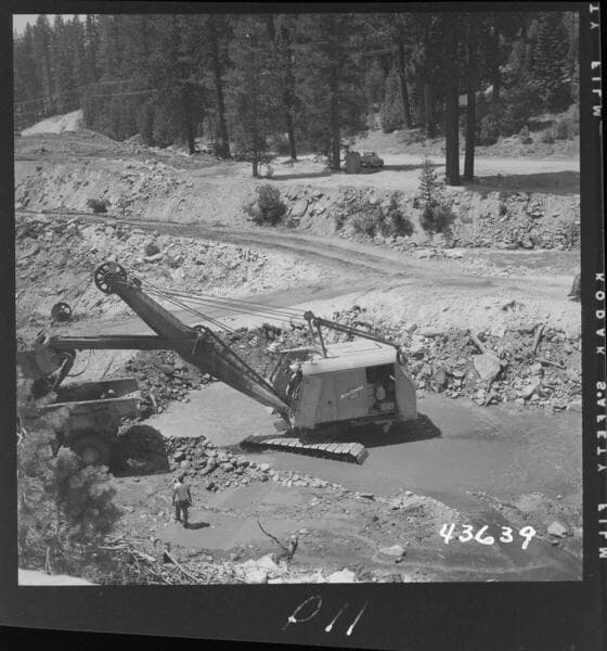 Portal Powerhouse - Tailrace channel excavation view from highway bridge. Boulders ready for shooting.