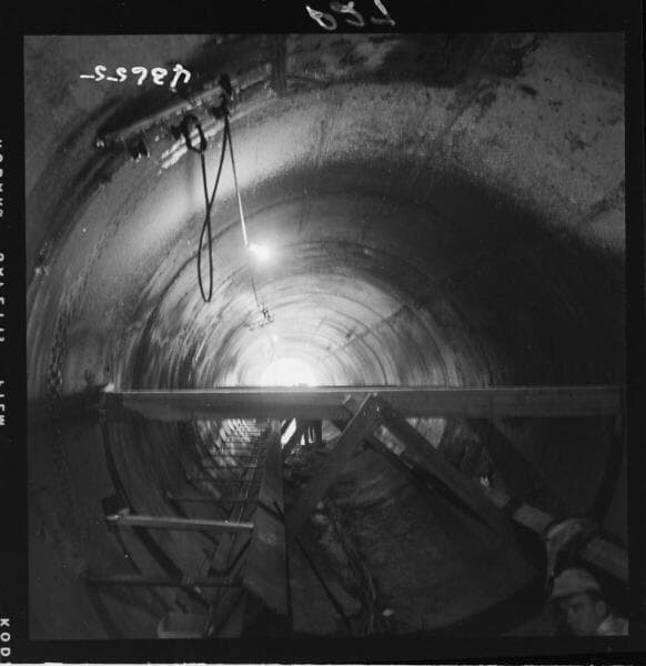 Portal Powerhouse - Concreting pipe supports in Ward Tunnel. View of supports from upper end.