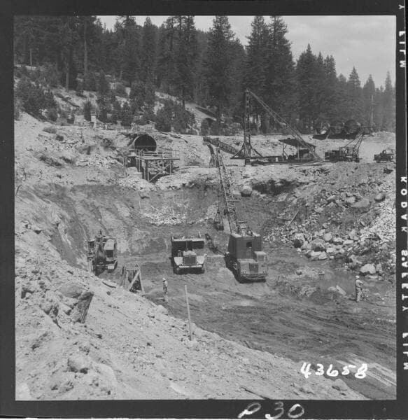 Portal Powerhouse - Forebay - View from downstream of sluice pipe foundation excavation.