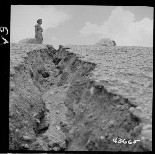 Big Creek, Vermilion Dam - View from berm showing largest gulley.