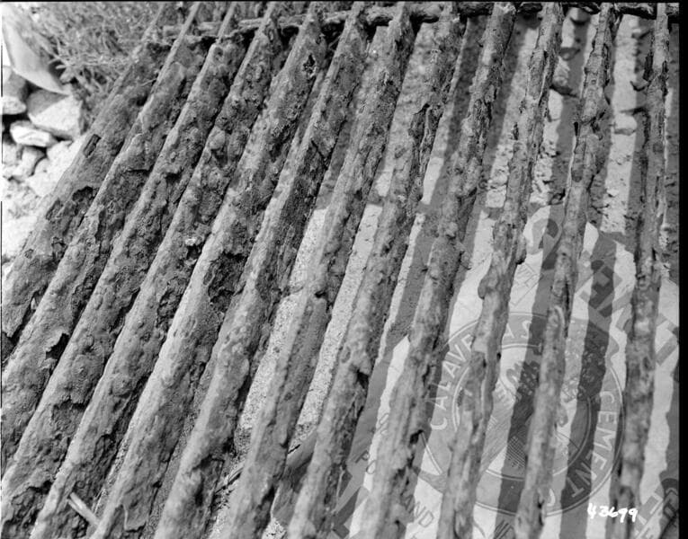Big Creek, Huntington Lake Dams - Upstream Protection - Section of trash rack panel removed from front of 42" sluice gates, Dam #1, showing condition.