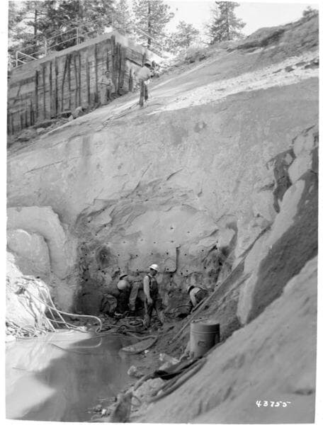 Portal Powerhouse - Forebay - drilling final round in short tunnel inlet channel.