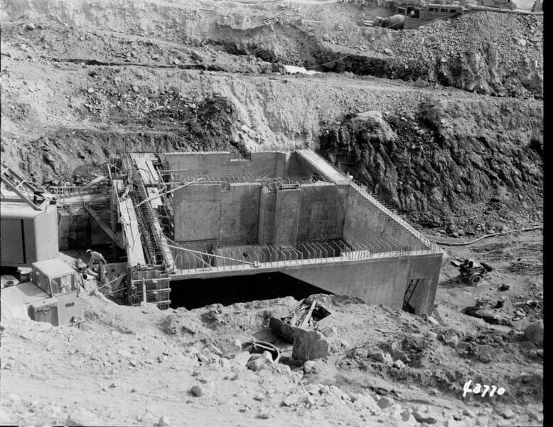 Portal Powerhouse - Concreting pipe supports in Ward Tunnel. View of supports from upper end.