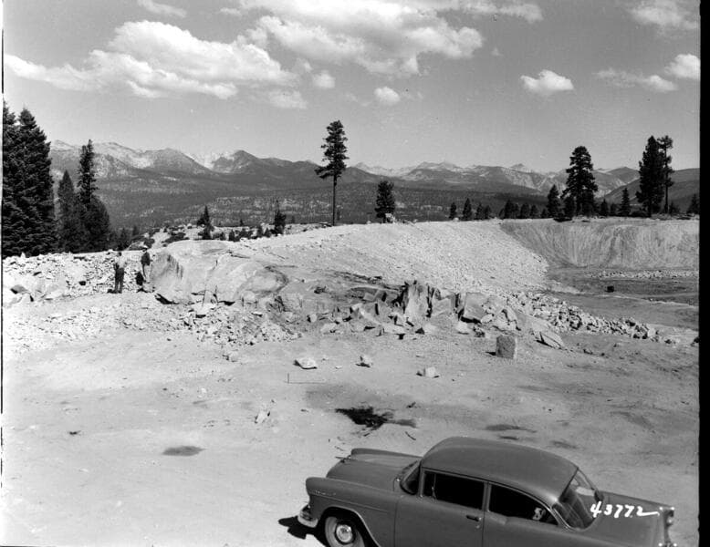 Portal Powerhouse - Forebay - Drilling rock for spillway excavation as seen from dam abutment.