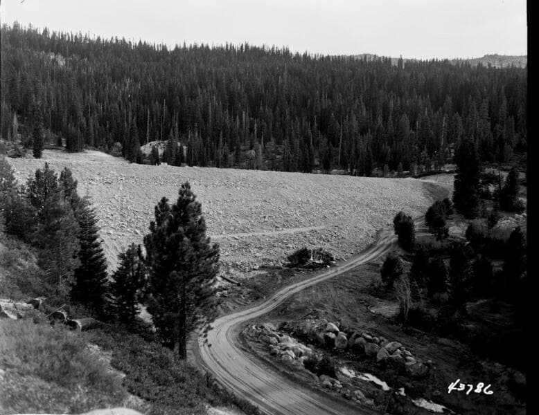 Portal Powerhouse - Forebay - Completed concrete encasement around 24" diameter sluice pipe through rock fill downstream section.
