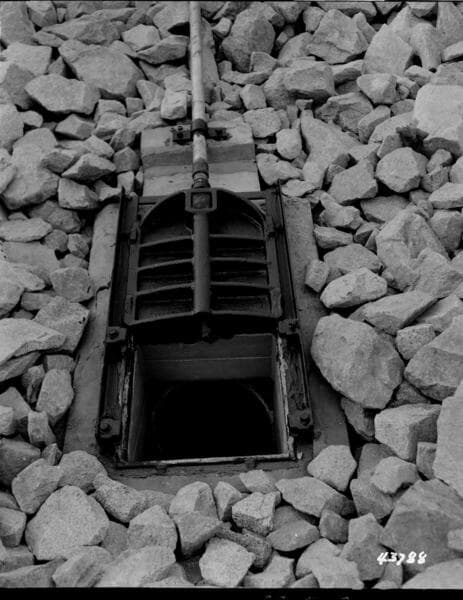 Portal Powerhouse - Forebay - Sluice pipe viewed from upstream.