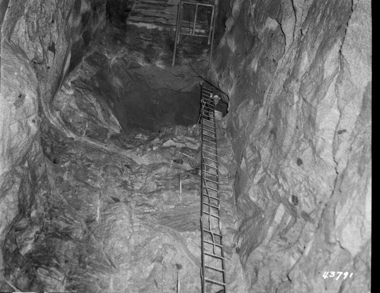Portal Powerhouse - Portal Forebay - Looking west - shows cutting of channel to vertical shaft.