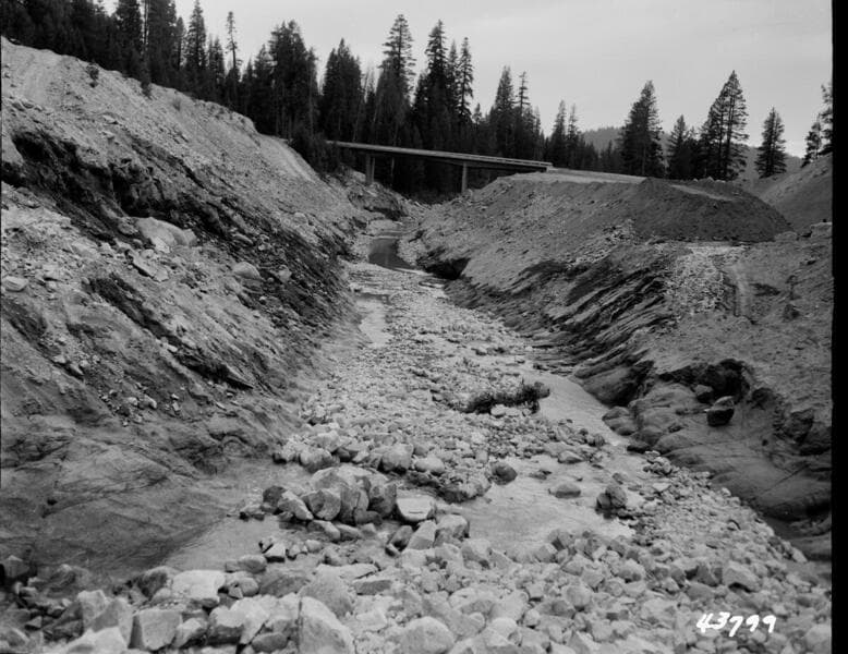 Portal Powerhouse - Record pictures of tailrace channel during outage: Upper end of channel and lower end of tunnel diversion channel used during 1955.
