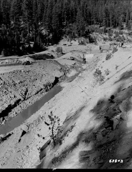 Portal Powerhouse - Record pictures of tailrace channel during outage: Upper end of channel and lower end of tunnel diversion channel used during 1955.
