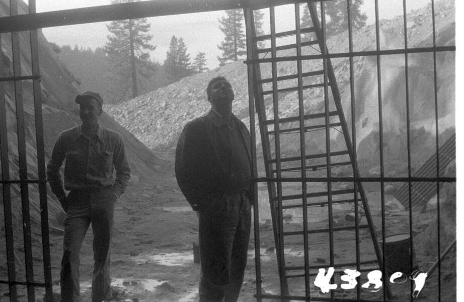 Portal Powerhouse - Portal Forebay - Looking up shaft, shows inlet tunnel intersection with shaft, temporary ladder.