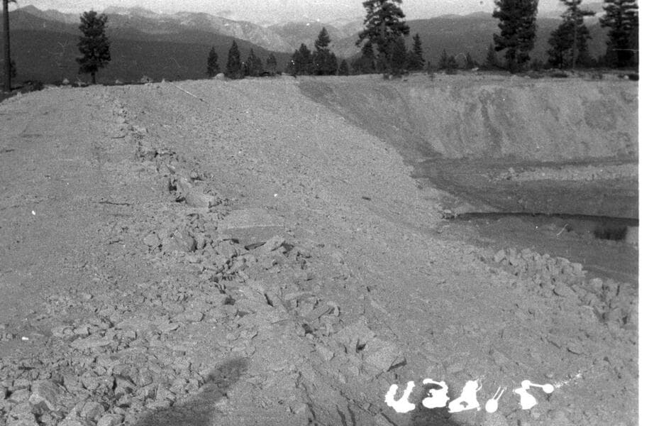 Portal Powerhouse - Forebay - Cleaning and trimming rock foundation for spillway crest concrete.