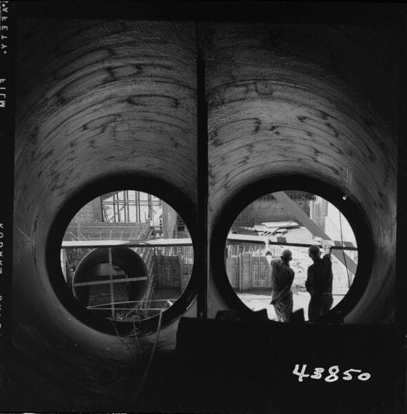 Portal Powerhouse - Staging for inserting I-beams and penstock into pipe.