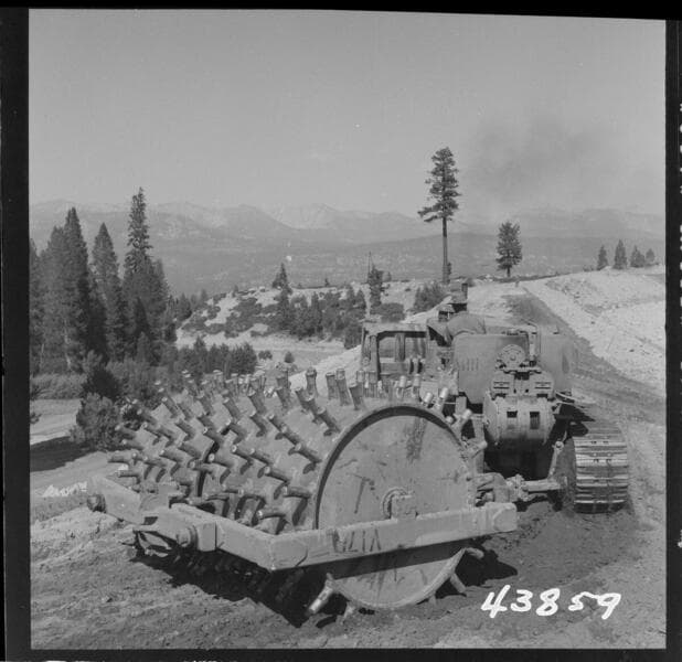 Portal Powerhouse - Forebay - Compacting downstream dam foundation near west abutment.