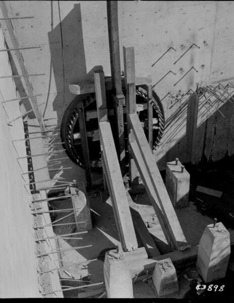 Portal Powerhouse - Placing reinforcing steel for concrete disc, steel plate bulkhead.