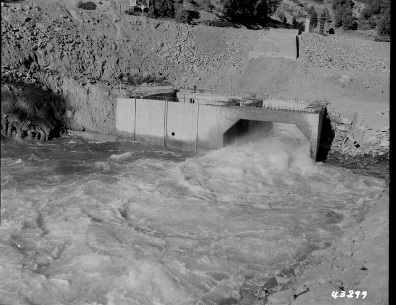 Portal Powerhouse - View of 1100 cfs flow through unrestricted bypass.