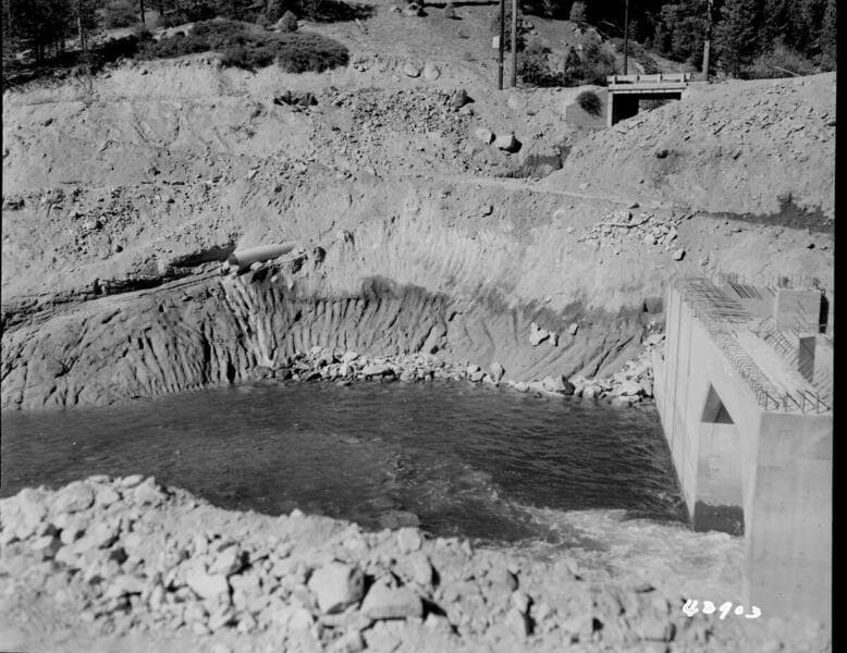 Portal Powerhouse - Flow test - Uncompleted penstock flow approximately 1300 cfs.