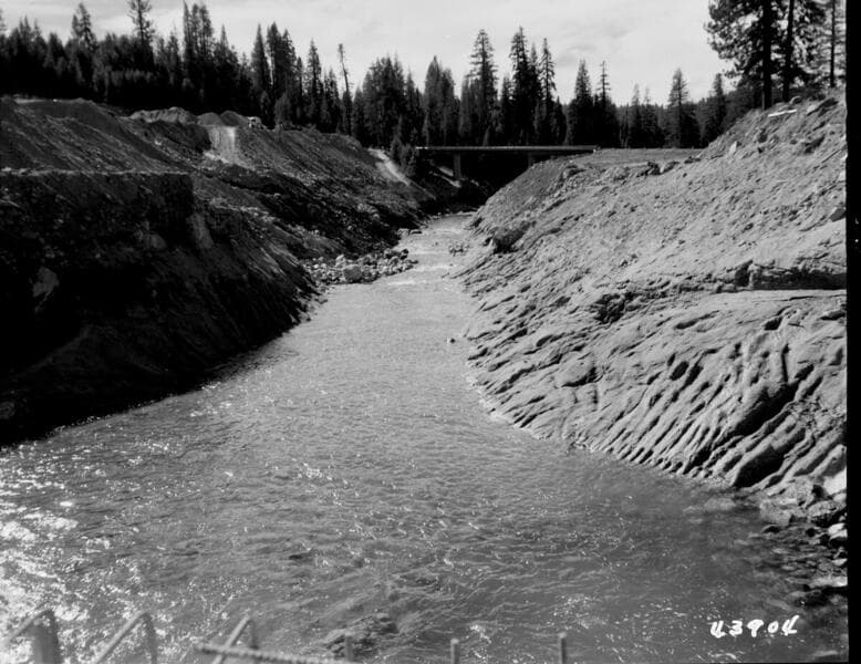 Portal Powerhouse - Down tailrace channel, 700 cfs flow.