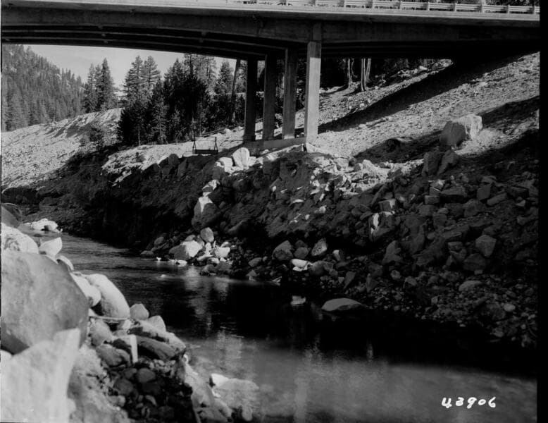 Portal Powerhouse - Tailrace channel under highway bridge after 1800 cfs flows.