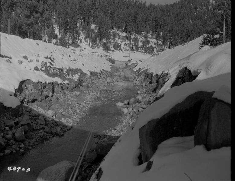 Portal Powerhouse - Record photo of tailrace channel from State Hwy. Bridge before clean-up from Outage on Sept. 10, 1956