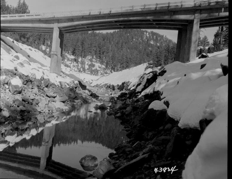 Portal Powerhouse - Tailrace channel from highway bridge. Approx. 1850 cfs flow from Ward Tunnel and Rancheria Creek.