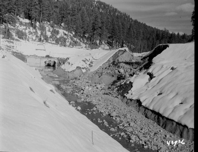 Portal Powerhouse - Temporary flow diversion from 12' pipe [Ward Tunnel]. Flow about 425 cfs..