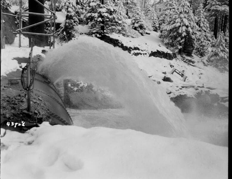 Portal Powerhouse - Flow test - Uncompleted penstock flow approximately 1300 cfs.
