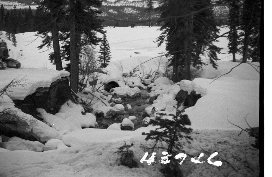 Portal Powerhouse - east erosion to road - shows 10' deep channel eroded by Camp Creek east.