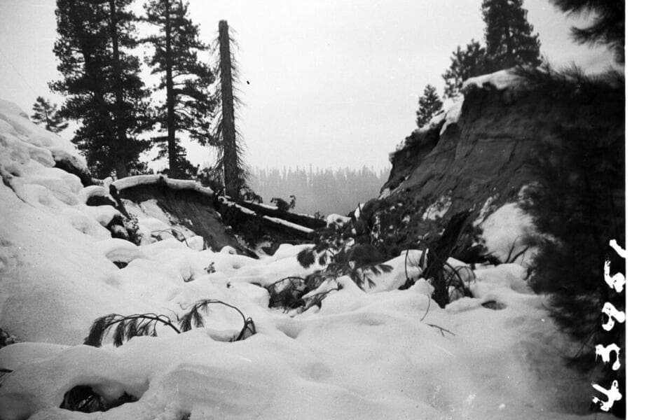 Portal Powerhouse - North - Shows erosion damage to road. Camp Creek west channel eroded 10' deep by 25' wide, 60" culvert washed 30' downstream.