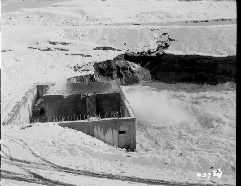 Portal Powerhouse - Photo taken shortly after break-through of diversion ditch seepage into tailrace to south of Powerhouse.
