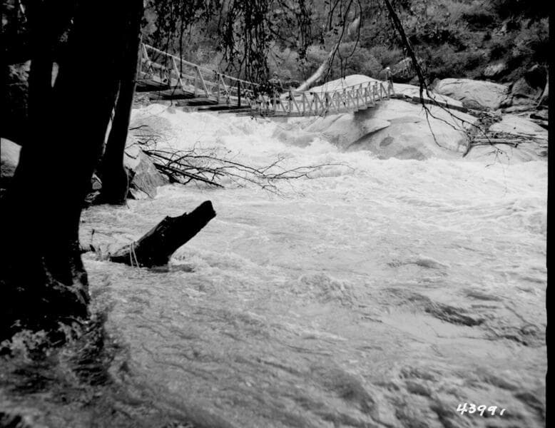 Kaweah Miscellaneous - Kaweah Hydro repair - Suspension bridge across Middle Fork [Kaweah River].