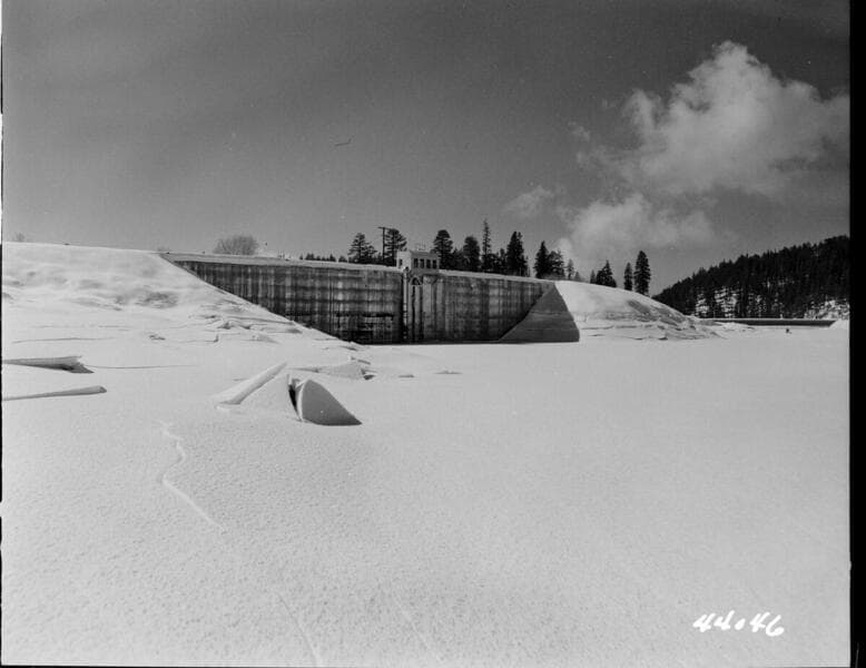 Big Creek, Huntington Lake Dams - Dam #1 - General view of upstream face with reservoir at elevation 6876.