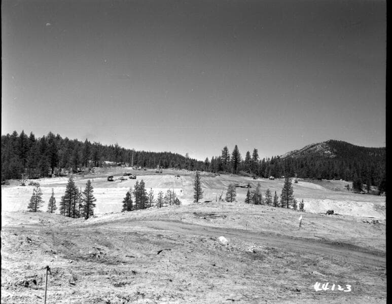 Big Creek, Vermilion Dam - Fill operations at dam, view east from P. I. station 10-75.