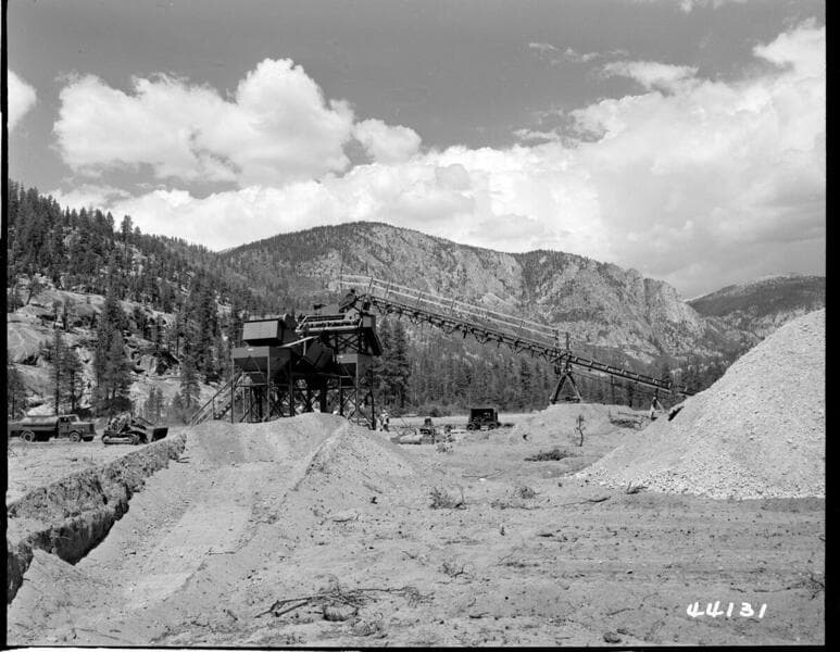 Big Creek, Vermilion Dam - Aggregate screening plant in operation.