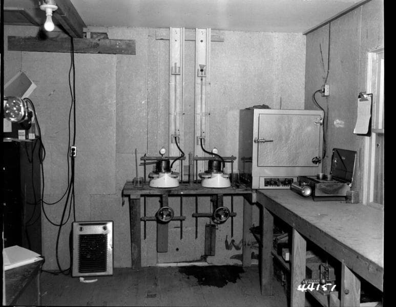 Big Creek, Vermilion Dam - Permeability test equipment in Soil Laboratory.